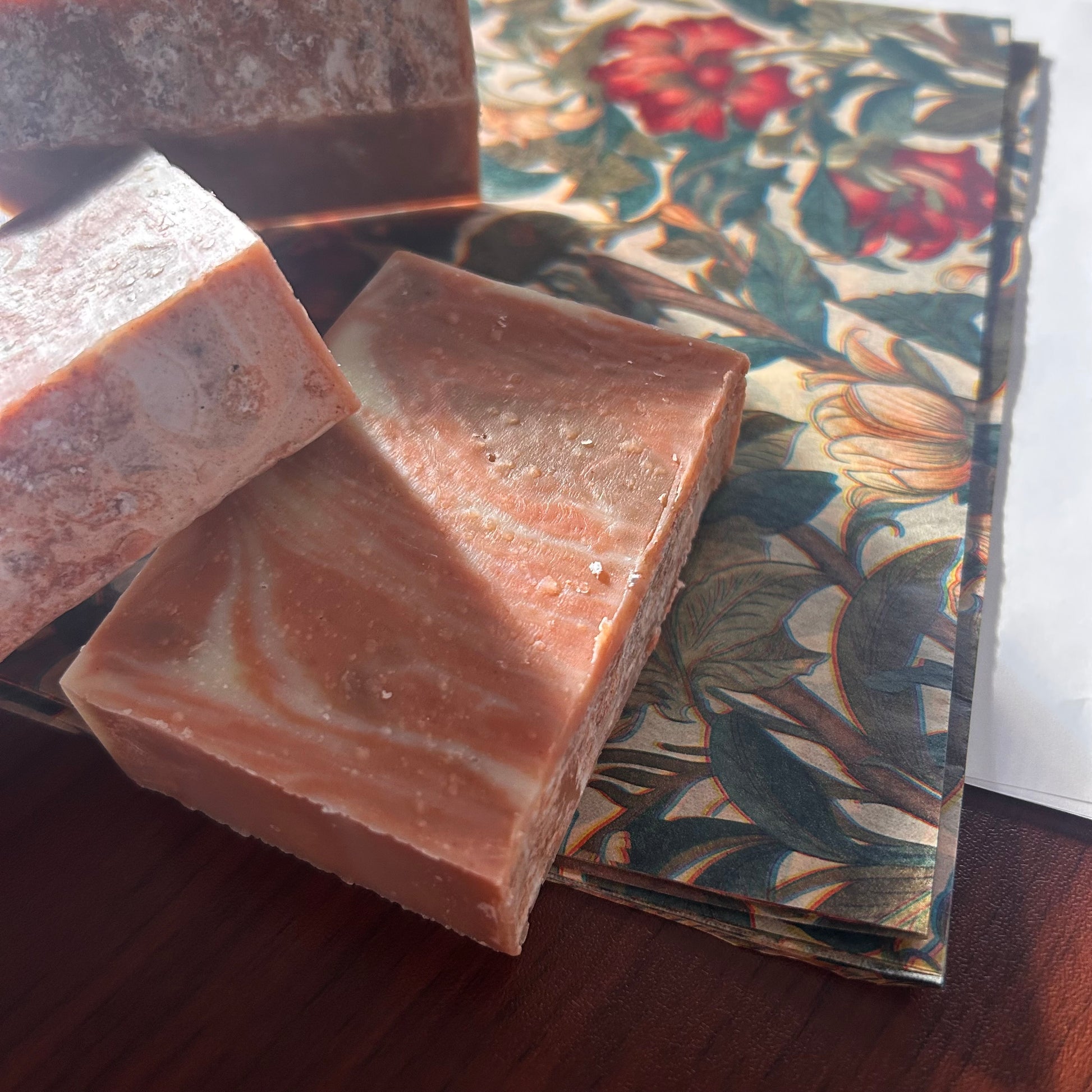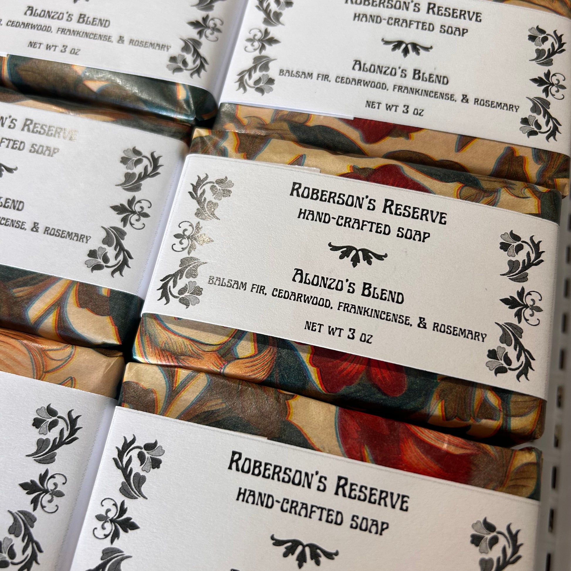 Featuring balsam fir, cedarwood, frankincense, and rosemary and a pink-and-red clay swirl, this blend is reminiscent of fresh cut lumber. Alonzo Roberson owned Roberson Lumber, which operated in Binghamton, NY during the late 1800s. He and his wife Margaret moved into the Roberson Mansion home in 1907. This unique soap is packaged in beautiful paper wrapping designed in an Art Nouveau style and is the perfect complement to Margaret's Blend. Available exclusively at the Roberson Museum gift shop, it's like taking a piece of history home!